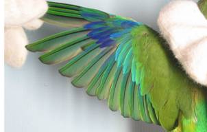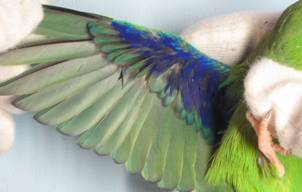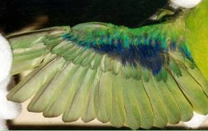 * links bovenzijde vleugel groenstuit man | rechts Bovenzijde vleugel prachtgroenstuit man