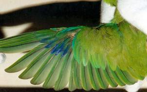 Vanuit de kweekervaringen hebben we gezien dat de poppen van de ondersoort bij de blauwvleugels Forpus xanthopterygius. spengeli (Hartlaub, 1885) en de Spengel’s blauwvleugeldwergpapegaai) qua verschijningsvorm erg dicht bij de groenstuit poppen ligt, De spengeli poppen bezitten een gele band over het voorhoofd tot om de ogen (zie afbeelding rechts)