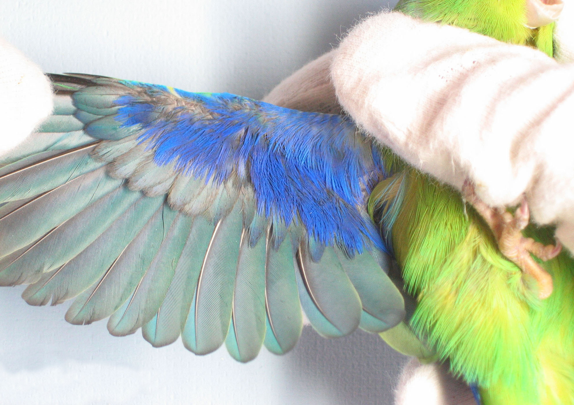 Als deze Insularis een selectieve kweekvorm van een Blauwvleugel is, waarom ontstaat dan ook hier geen differentiaties in de jonge vogels? Deze blijven uiterlijk allemaal hetzelfde?? Voor het vergelijk met een andere Forpus denk hierbij voor het gemak aan de groenstuiten. Bij Groenstuiten kan het voorkomen na vele generaties nog steeds verschillende uiterlijke verschijningsvormen van ondersoorten in één nest worden geboren. Daar is bij de ‘insularis’ geen sprake van.